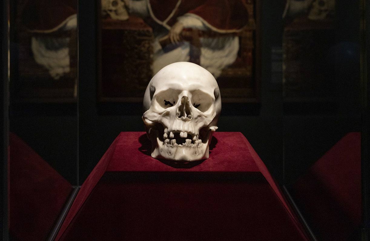 ファビオ・キージ(1599-1667)が1655年に教皇に選出されてから2日後、彼はベルニーニを呼び出し、鉛の石棺と大理石の頭蓋骨を注文した。今後、棺は彼のベッドの下に置かれ、頭蓋骨はいつでも死が訪れる可能性があることを思い出させるために机の上に置かれることになっていた。善良なキリスト教徒として、彼はこれに備えて、自分の生涯を可能な限り最大限に活用したいと考えていました。たとえば、ローマを教皇の威厳にふさわしい都市に拡張することによってでした。実際、彼はベルニーニに柱廊のあるサンピエトロ広場、ペトリ大聖堂、王スカラ座などの重要な工事を行わせました。